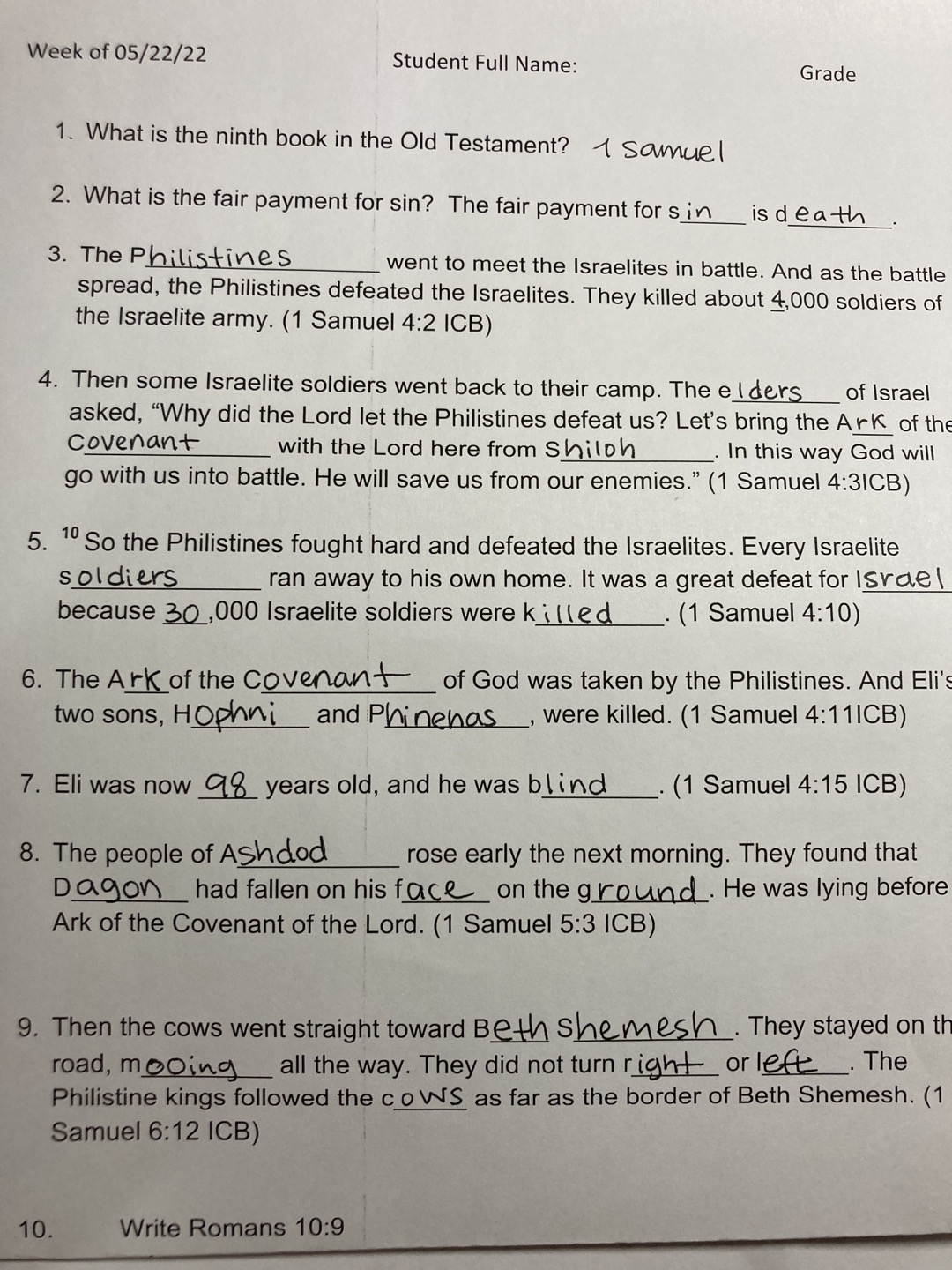 Weekly Bible Questions Files