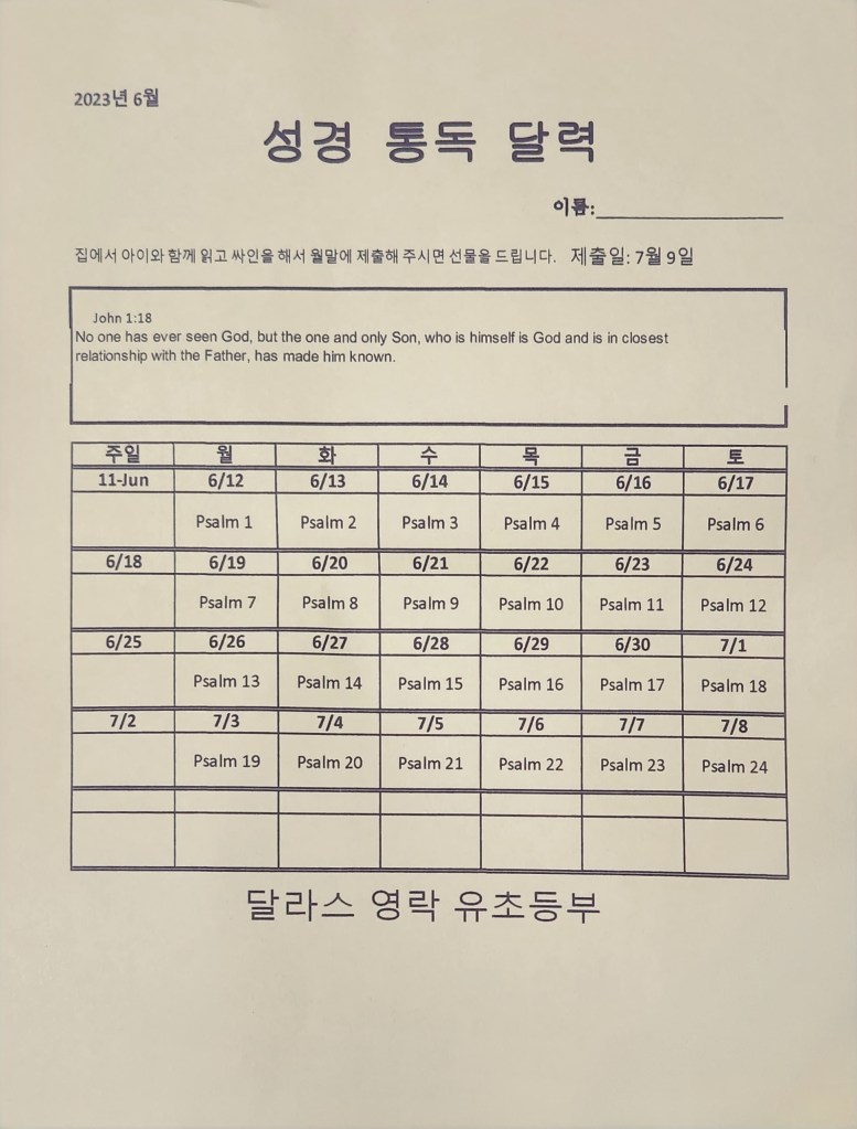 2024 Bible Reading Log 성경 읽기 표 11-24Download 성경 읽기표 8월 성경 읽기 표 08-24Download 성경 읽기 표 05-24Download 성경 읽기 표 04-24Download 성경 읽기 표 03-24Download 성경 읽기 표 01-24Download 2023 Bible Reading log 성경 읽기표 (12월) THE APOSTLES CREEDDownload 성경 읽기 표(11월)Download 성경 읽기 표(10월)Download 성경 읽기 표(9월)Download 성경 읽기 표(8월)Download 성경 읽기 표(7월)Download 성경 읽기표 6월Download 성경 읽기 표(5월)Download 성경 읽기 표(4월)Download 성경 읽기 표(3월)Download 성경통독 달력-1_230103_144810Download 성경통독 달력-1Download