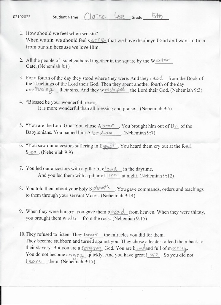 새로운 매주 퀴즈 포인트 시스템이 아이들에게 호응도가 참 좋습니다. 부모님께서 적극적으로 아이들에게 격려해 주시길 부탁드립니다.