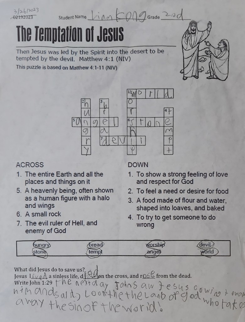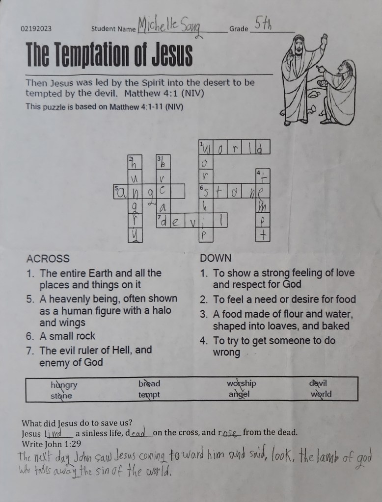 이번 주일도 매주 성경 퀴즈와 성경 통독 열심히 해서 제출이 되었습니다. 다음 주일엔 더 많은 참여 부탁드립니다. 이름을 적지 않고 제출한 아이들이 있습니다. 꼭 이름을 적어 제출하게 확인 부탁 드립니다.