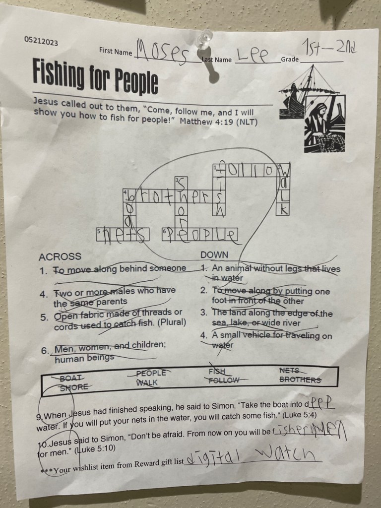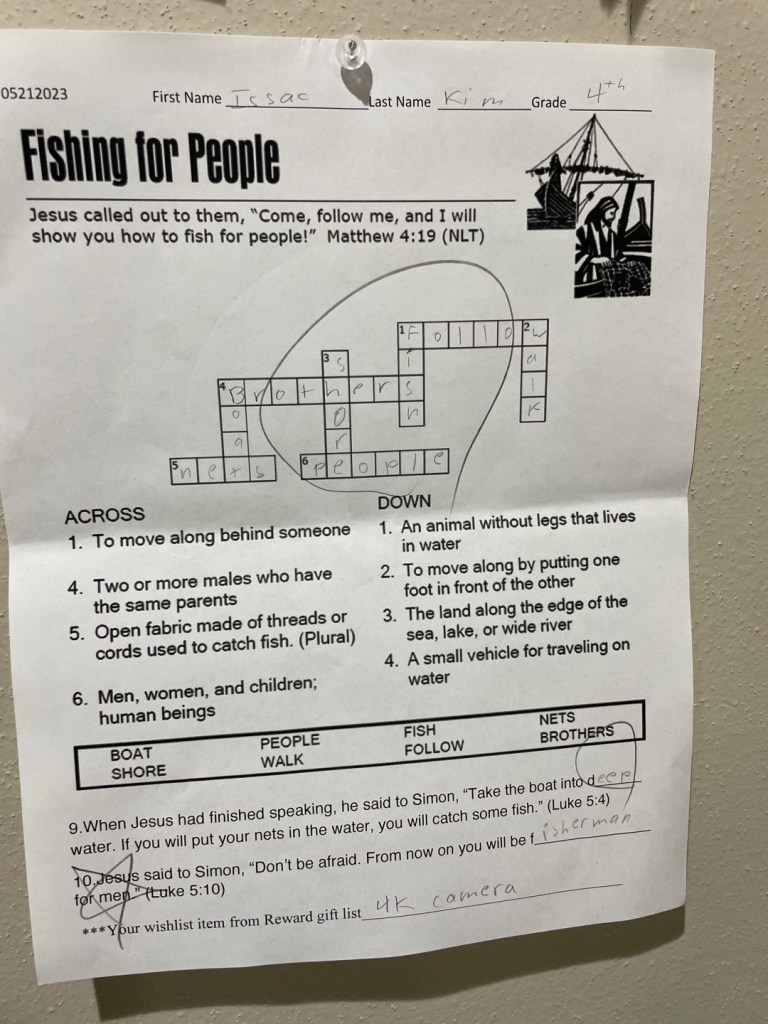 많은 학생들이 성경퀴즈를 해서 제출을 해 주었습니다. 부모님께서 적극적으로 아이들에게 격려해 주시길 부탁드립니다. 이름이 없거나 알아 볼수 없는 것은 앞으로 유년부 벽면에 걸어 놓아서 이름을 써서 다시 제출 하도록 하려 합니다.