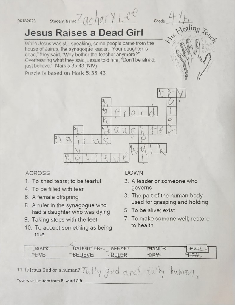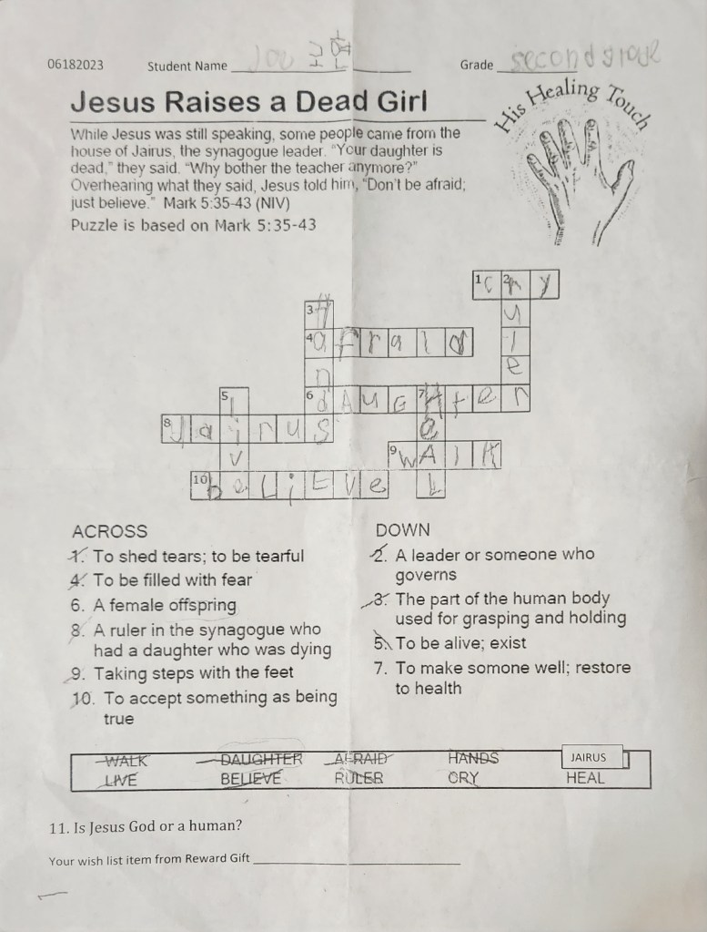 많은 학생들이 성경퀴즈를 해서 제출을 해 주었습니다. 부모님께서 적극적으로 아이들에게 격려해 주시길 부탁드립니다. 이름이 없거나 알아 볼수 없는 것은 앞으로 유년부 벽면에 걸어 놓아서 이름을 써서 다시 제출 하도록 하려 합니다.