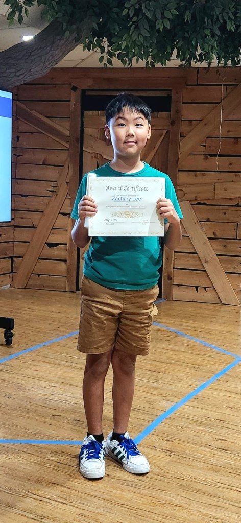 매주 성경퀴즈를 제출한 유년부 학생중에서 2명을 뽑아서 20포인트와 Award Certificate 을 드립니다. 더많은 유년부 아이들이 참여 하기를 바랍니다. 오늘 상받은 학생은 Zachary Lee 그리고 류도현 입니다. 모두 축하합니다.