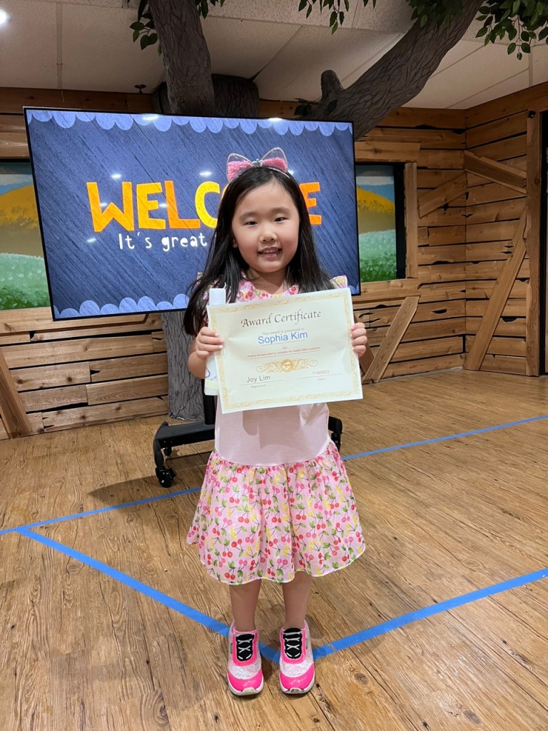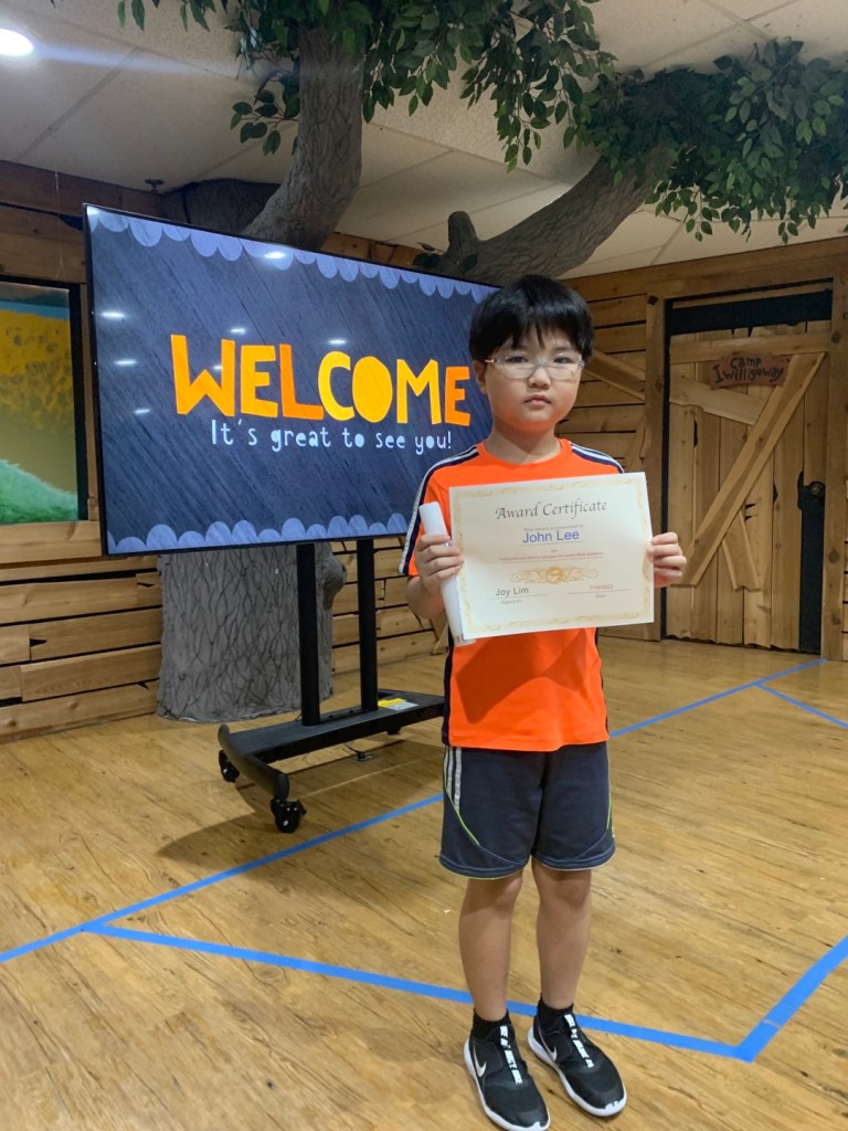 매주 성경퀴즈를 제출한 유년부 학생중에서 2명을 뽑아서 20포인트와 Award Certificate 을 드립니다. 더많은 유년부 아이들이 참여 하기를 바랍니다. 오늘 상받은 학생은 John Lee 그리고 Sophia Kim 입니다. 모두 축하합니다.