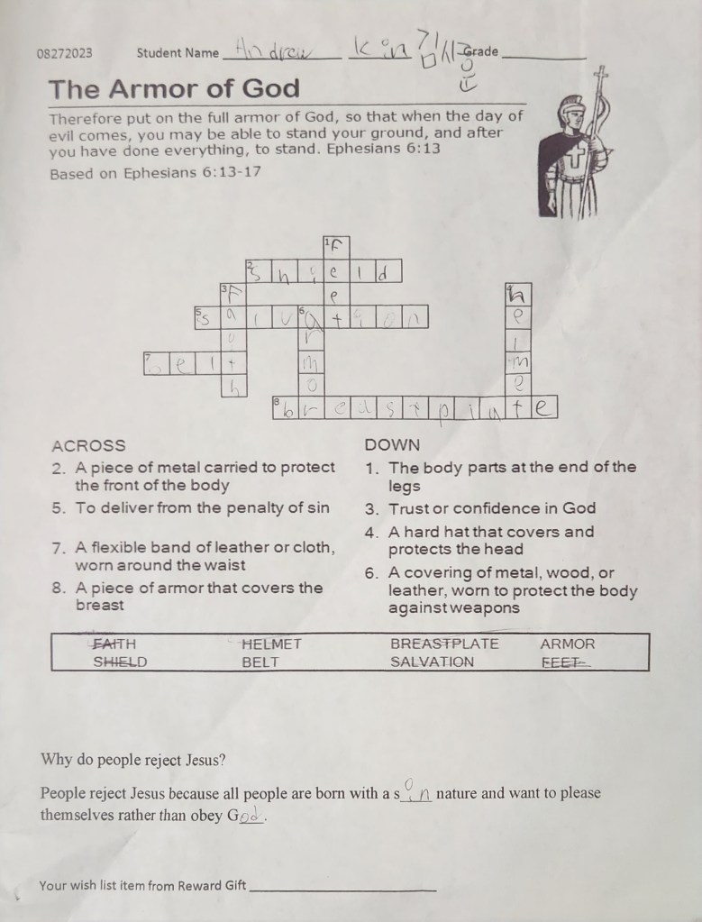 많은 학생들이 성경퀴즈를 해서 제출을 해 주었습니다. 부모님께서 적극적으로 아이들에게 격려해 주시길 부탁드립니다. 이름이 없거나 알아 볼수 없는 것은 앞으로 유년부 벽면에 걸어 놓아서 이름을 써서 다시 제출 하도록 하려 합니다.