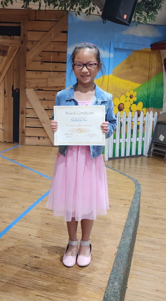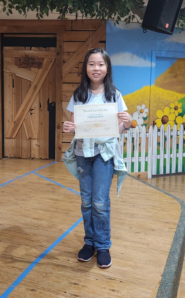 매주 성경퀴즈를 제출한 유년부 학생중에서 2명을 뽑아서 20포인트와 Award Certificate 을 드립니다. 오늘 2명이 상을 받았습니다. 상받은 학생은 Adeline Kim 그리고 Natalie Ku 입니다. 축하합니다.