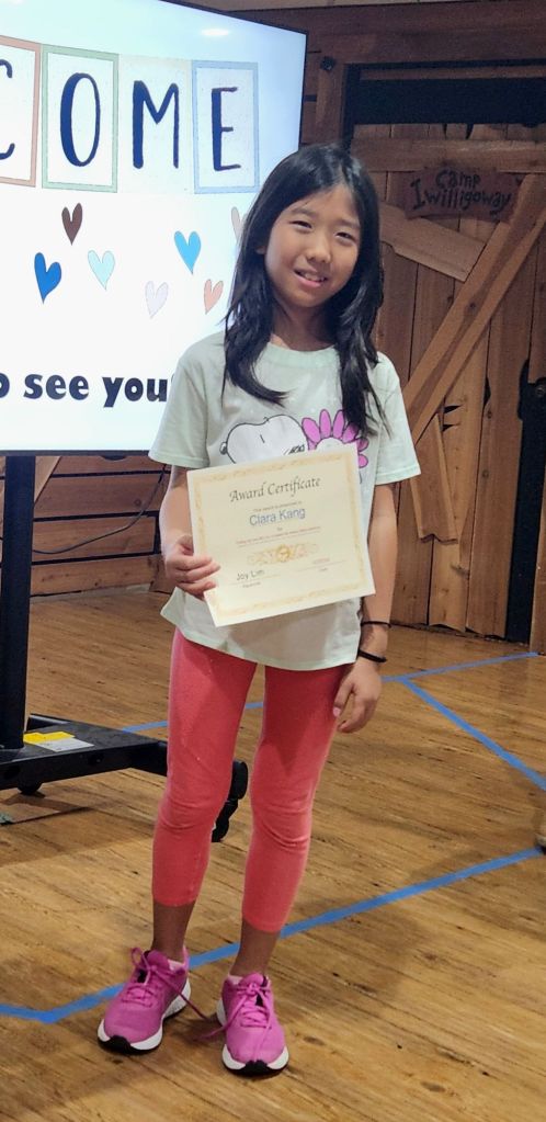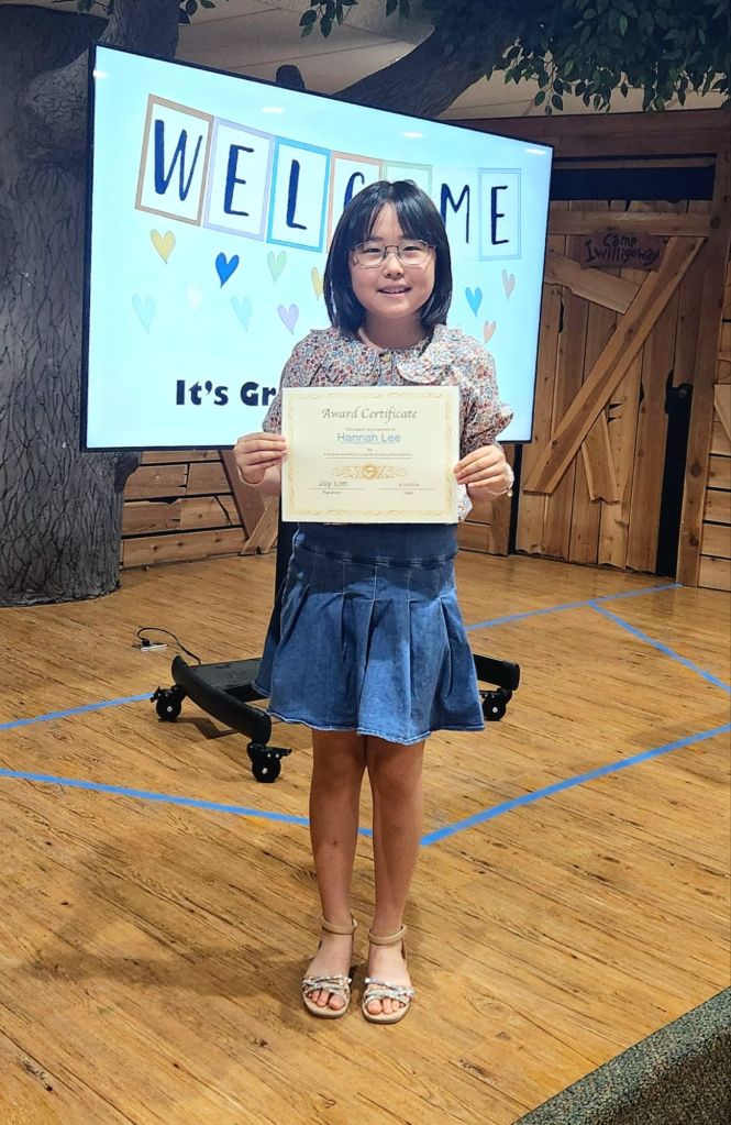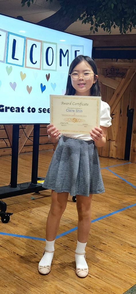 매주 성경퀴즈를 제출한 유년부 학생중에서 2명을 뽑아서 20포인트와 Award Certificate 을 드립니다. 오늘 3명이 상을 받았습니다. 상받은 학생은 Hannah Lee, Claire Shin, and Clara Kang 입니다. 축하합니다.