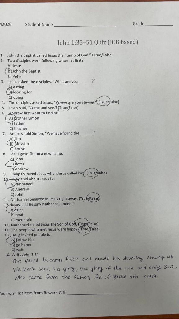Weekly Bible Questions Reward List